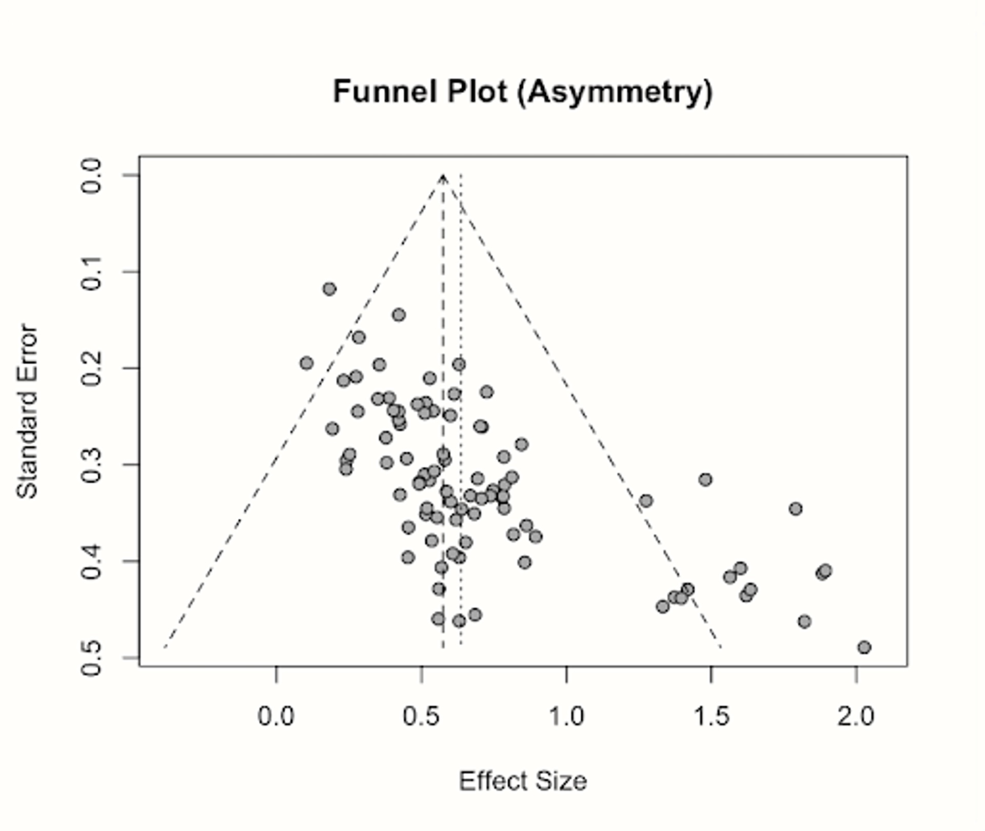 - False positives: Not all asymmetry is due to publication bias—clinical differences, methodological variations, or chance can also distort the plot.
